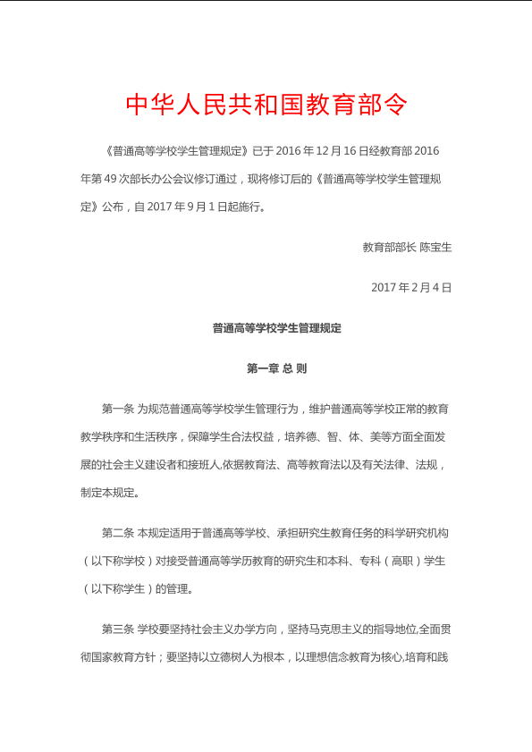 教育部41号令《普通高等学校学生管理规定》
