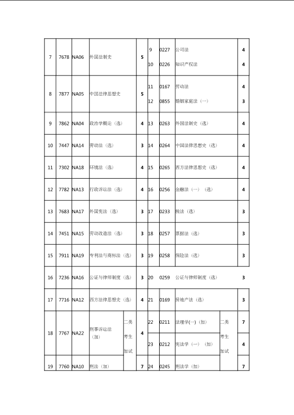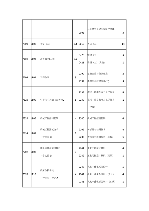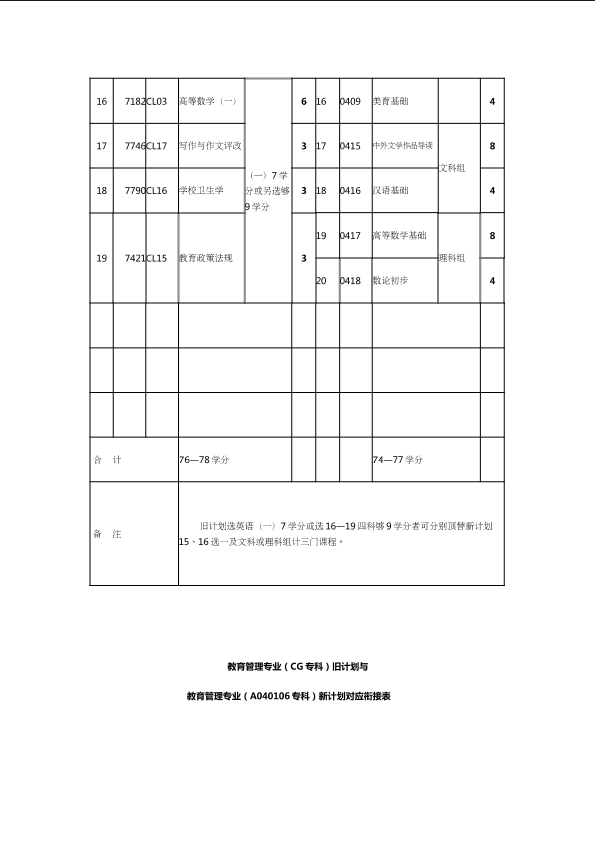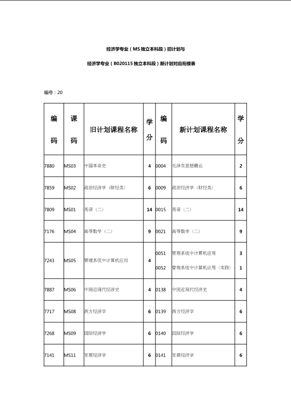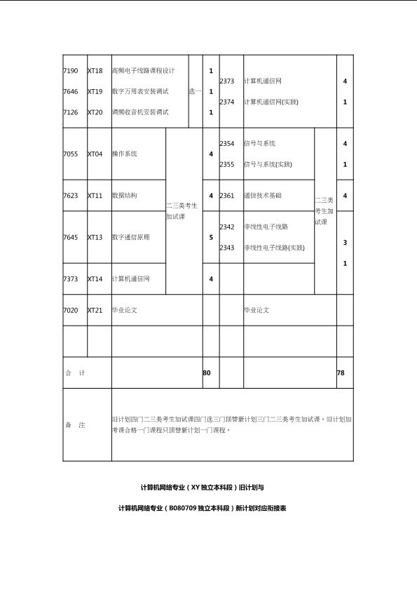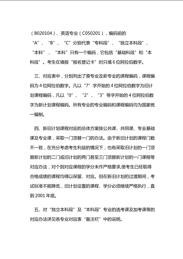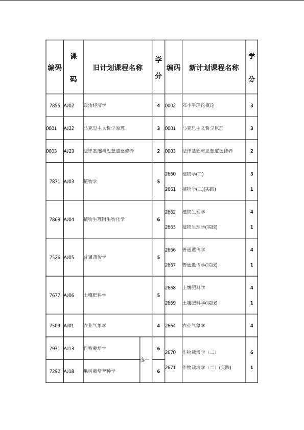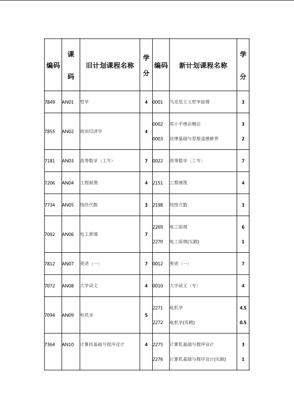 自考新旧课程对照表