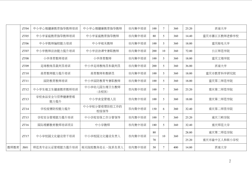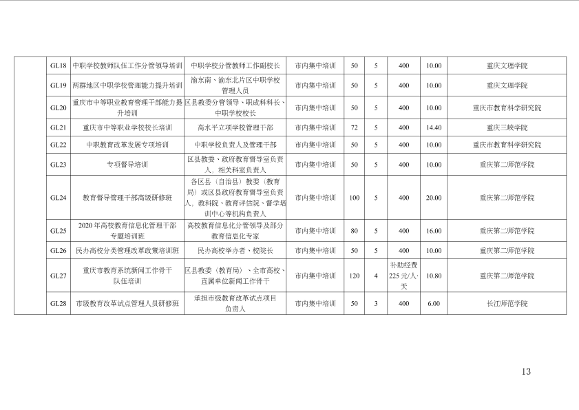 重庆市教育委员会关于公布2020年教师及教育管理干部市级培训项目承担机构名单的通知