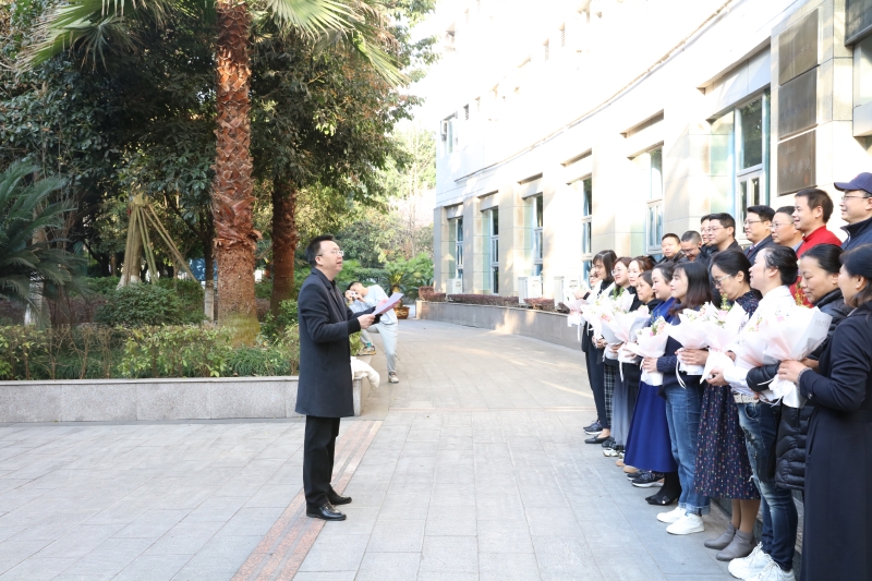 随后全体男同胞向女职工献上了精心准备的鲜花并合影留念。