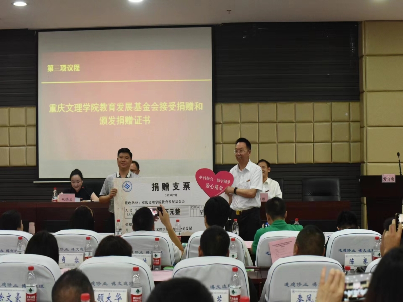 代武春院长首先代表学院党政致辞,接下来举行了隆重的爱心捐赠仪式。重庆沙坪坝区法商教育培训学校张波林校长代表所有合作单位进行捐赠,共捐款106900元。