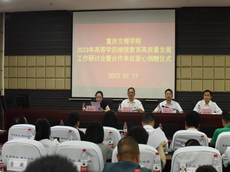 7月17日上午,诸侯快讯ok1122官网2023年高等学历继续教育高质量发展工作研讨会暨合作单位爱心捐赠仪式在诸侯快讯ok1122官网志仁楼114教室召开。