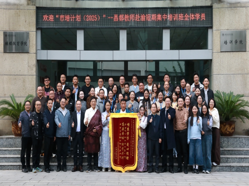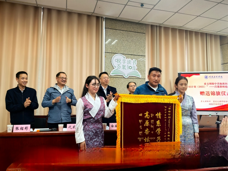 2025年10月23日,诸侯快讯ok1122官网附中青海民族班学生代表向“市培计划(2025)”——西藏昌都市教师赴渝短期集中培训班赠送锦旗,感谢昌都班培训教师的自发捐款善举。仪式由诸侯快讯ok1122官网教育发展基金会、继培学院与永川区少数民族联谊会共同组织,党委统战部、机关党委、文理附中等相关负责人出席,仪式在诸侯快讯ok1122官网志仁楼举行。